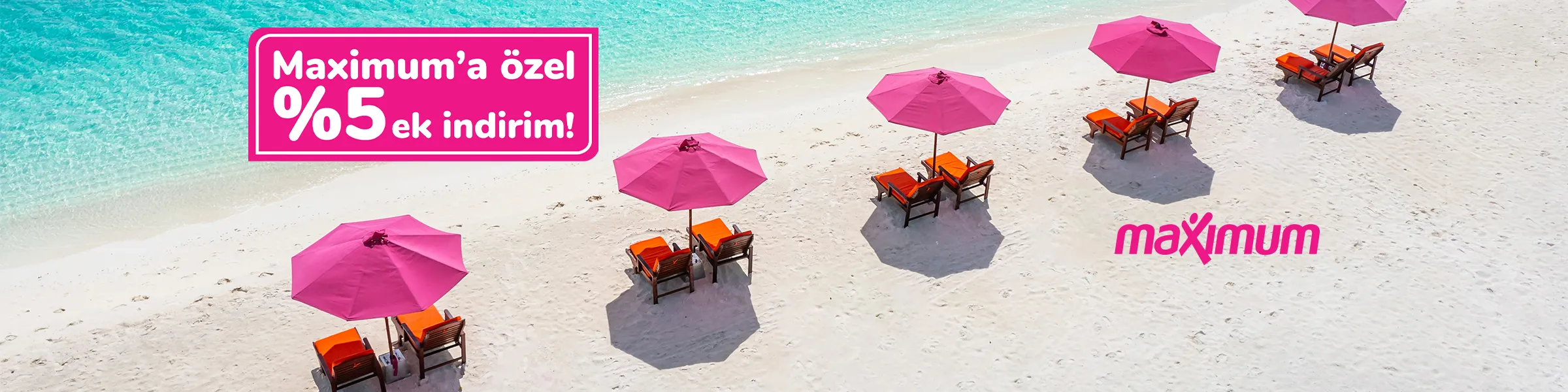 Maximum ile ekstra %5 İndirim Kazanın! Yurt İçi Otellerinde %5 İndirim! Üstelik vade farksız 3 taksit fırsatıyla! 30 Eylül'e Kadar Planınızı Yapın!