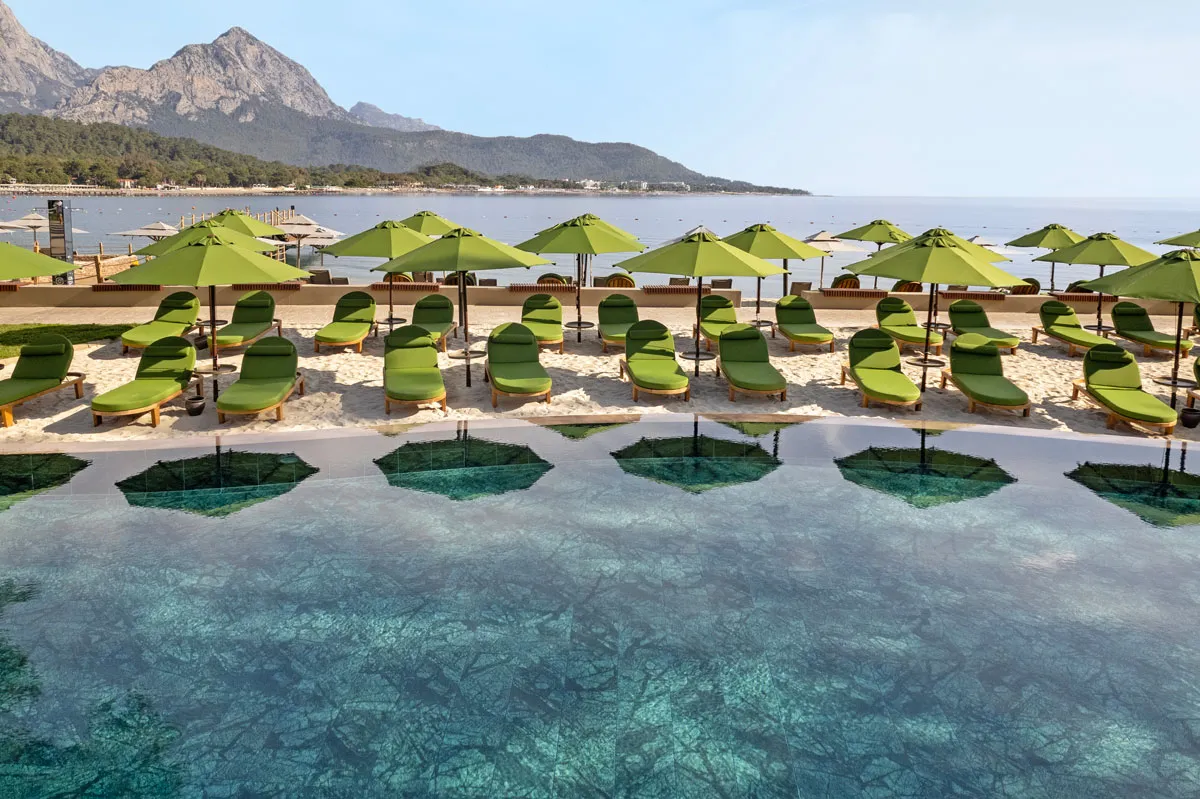 Denize sıfır mesafedeki tesiste 555 m uzunluğa sahip özel plajı Long Beach’in yanı sıra 100 m uzunluğunda Beluga Koy ve 120 m uzunluğunda Secret Koy isimli iki adet koyu bulunuyor. Şezlong, şemsiye, minder, plajda ve havuz başında ücretsiz. Tesisin iskelesi mevcut.