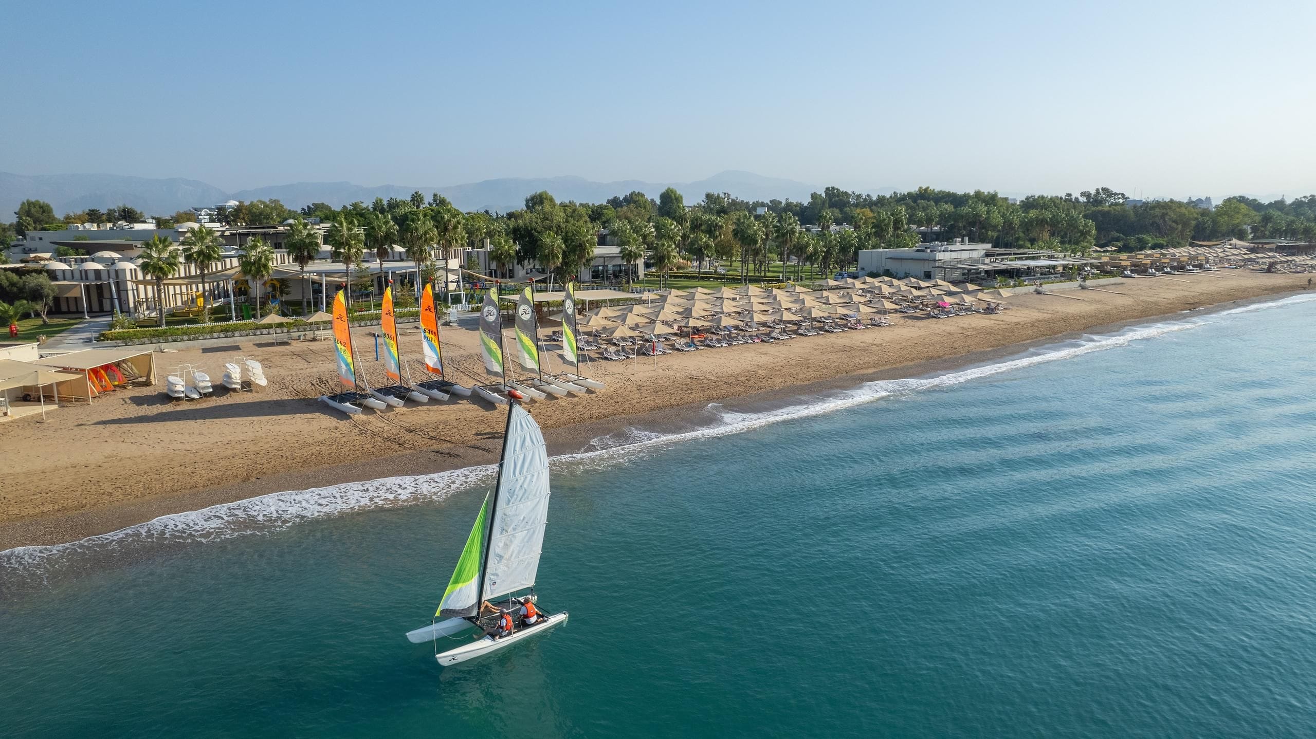 Denize sıfır konumdaki tesisin 300 m uzunluğunda kum-çakıl karışık özel plajı bulunuyor. Plajında ve havuzunda; şezlong, gölgelik ve plaj havlusu ücretsiz. Kabana ve özel servisler 10.00-18.00 saatleri arasında ücretli hizmet veriyor. Ücretli özel plaj cabana’larda (10.00 – 18.00); şampanya, taze meyveler, pasta ve kurabiyelerle birlikte cabana menüsünden yiyecek ve içecek servisi bulunuyor.