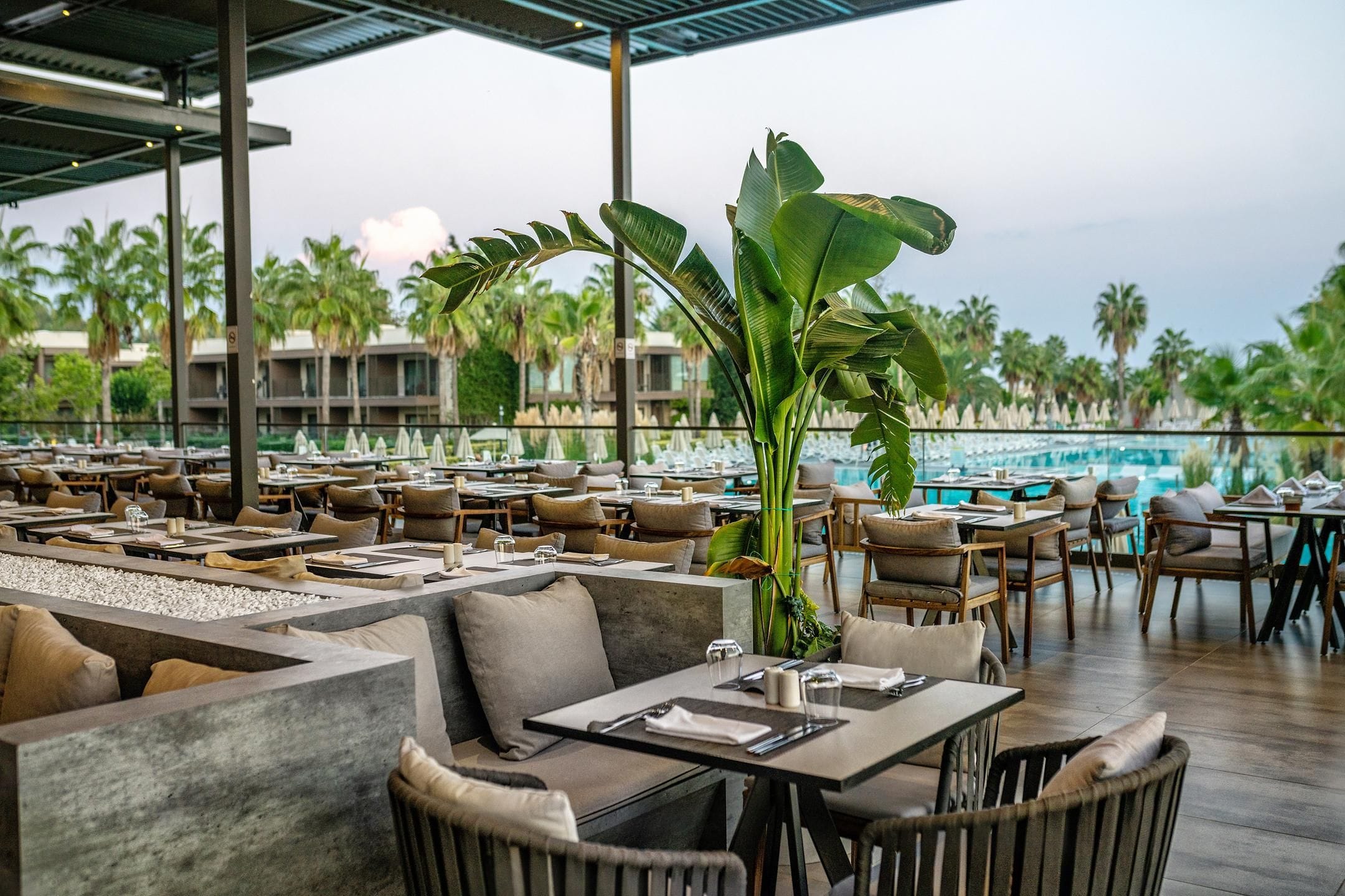 Ana restoranda açık büfe sabah kahvaltısı, öğle ve akşam yemeği (mevsimsel organik ürün sunumlarıyla) ücretsiz. Tesisin belirlemiş olduğu markalar dahilinde bazı yerli ve yabancı alkollü içecekler 24 saat açık olan barda ücretsiz. Geç kahvaltı mevcut ve kahvaltıda taze sıkılmış portakal suyu sunuluyor. Ana restoranda öğle ve akşam yemeği sırasında dondurma servisi, snack servisi, gece snack servisi bulunuyor. Pastanede taze pasta ve kurabiyeler, kahve ve çay servisi var.